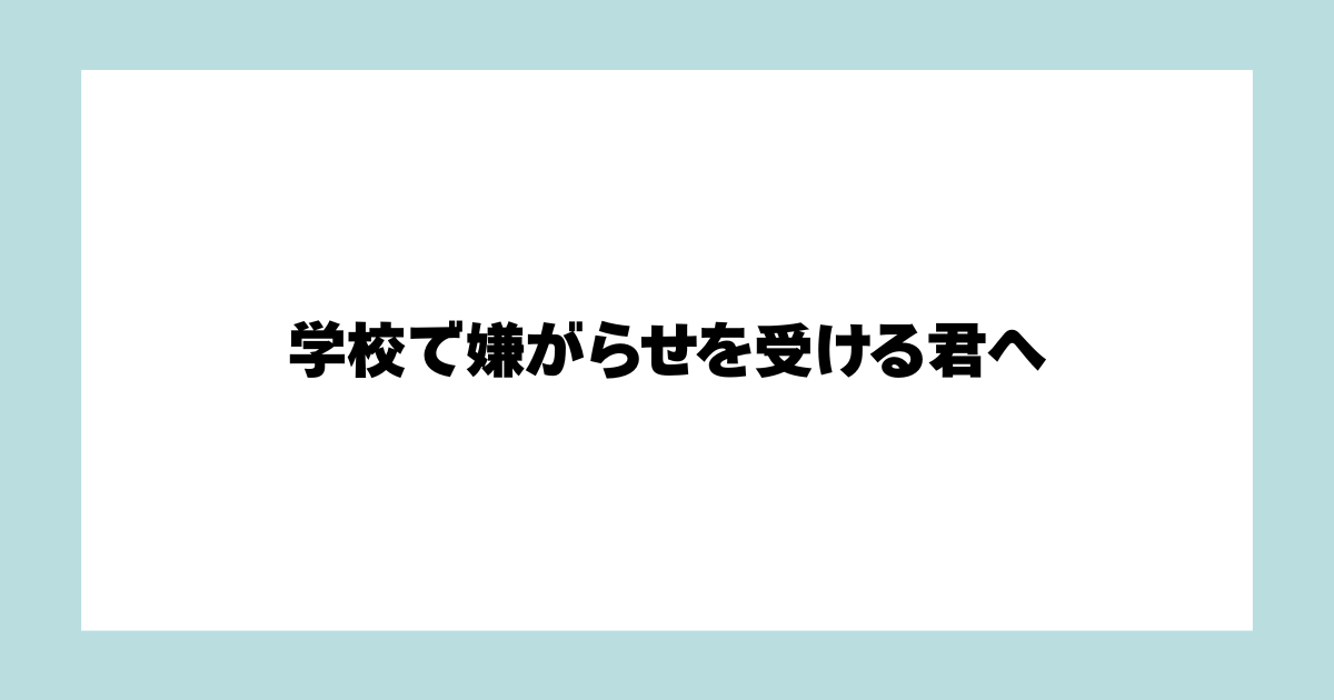 学校で嫌がらせにあっている君へ。どうしても伝えたいことがあります。